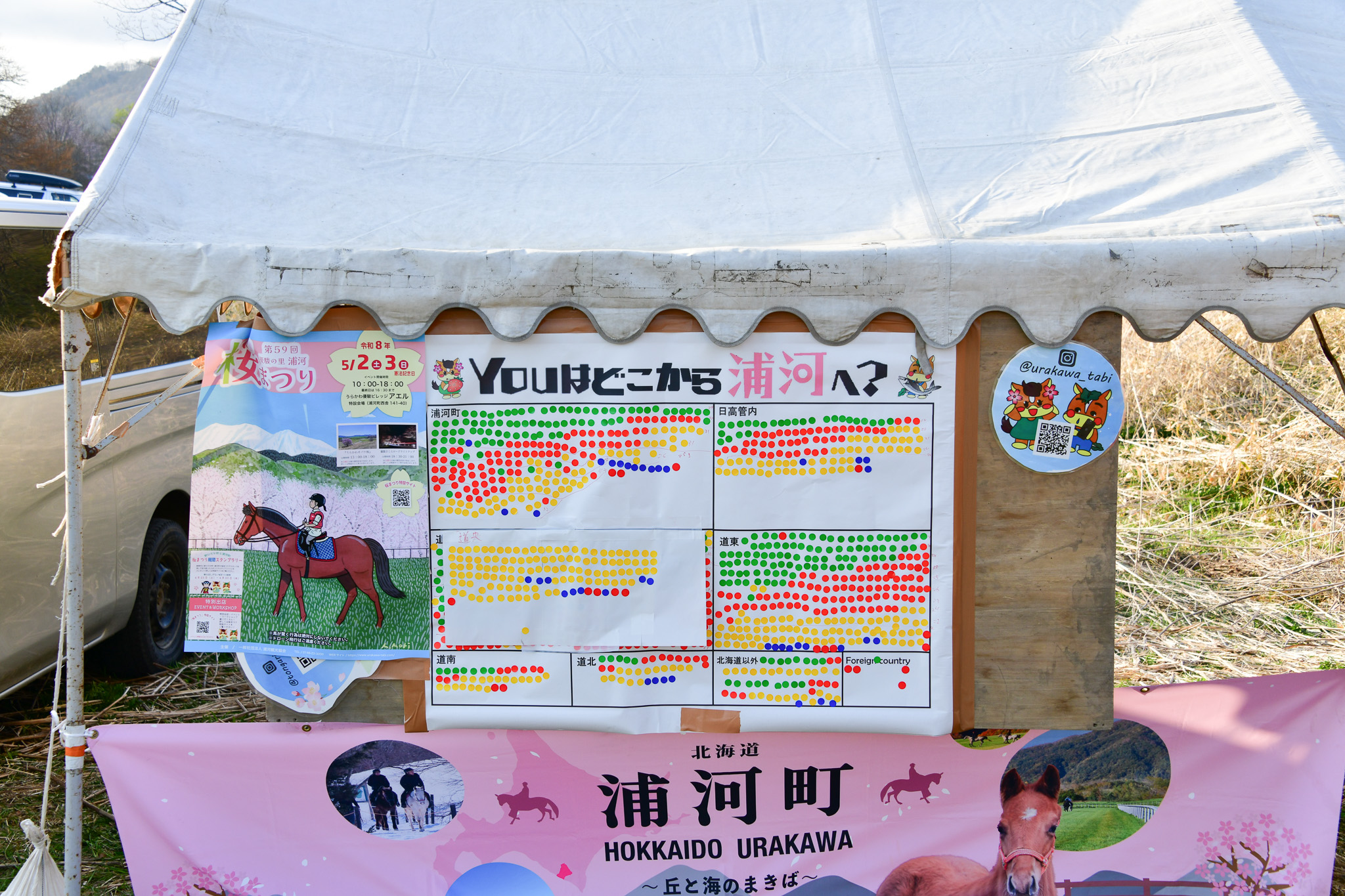 会場のテントでは「YOUはどこから浦河へ?」アンケートを実施しています。