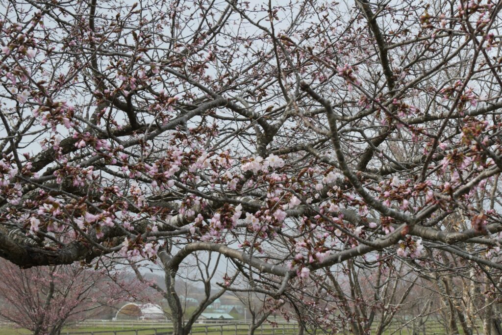 優駿さくらロード開花しました 投稿日: 2026年4月23日 約3㎞と長い距離を誇る『優駿さくらロード』内にもちらほらと開いている箇所が出てきました。 まだまだ蕾も多いですが本日開花とお伝えさせていただきます。 やはり早かった今年の桜です。 オバケ桜は公開期間が今週の金曜日から日曜日までの3日間 なんとか保ってくれそうです。 浦河も桜シーズンに入ってきました! 馬産地浦河ですので、馬を驚かすことがないよう注意を払ってお楽しみください。